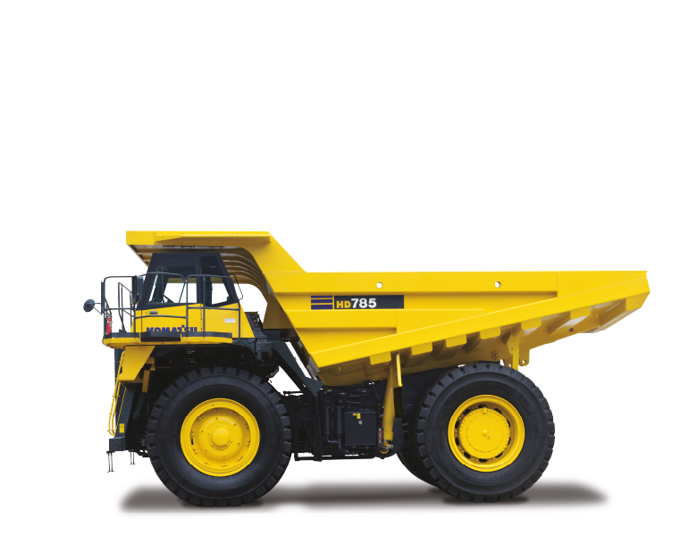 Komatsu dump trucks can transport heavy loads quickly, easily and cost effectively. The Komatsu HD785-7 rigid dump trucks are built around a powerful Komatsu engine and are exceptionally strong machines. They guarantee complete driving safety, even at high speeds.
