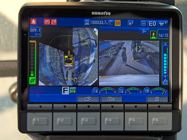 KomVision uses high-definition cameras and radar technology to provide operators with a real-time bird’s eye-view of their machines and their surroundings. Past, or in many cases, current practice requires operators of high capacity trucks to rely on mirrors to gauge their proximity to objects, vehicles and people.