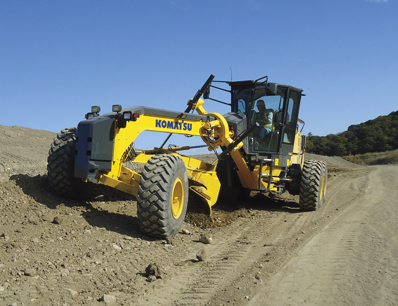 Powerful, with great control and low emissions, the GD705-5 motor graders have a power train with a torque converter drive and automatic transmission along with selectable work modes that combine for top class performances and low operation costs. A long wheelbase and a large articulation angle make slope cutting easy and provide simple and high quality levelling.