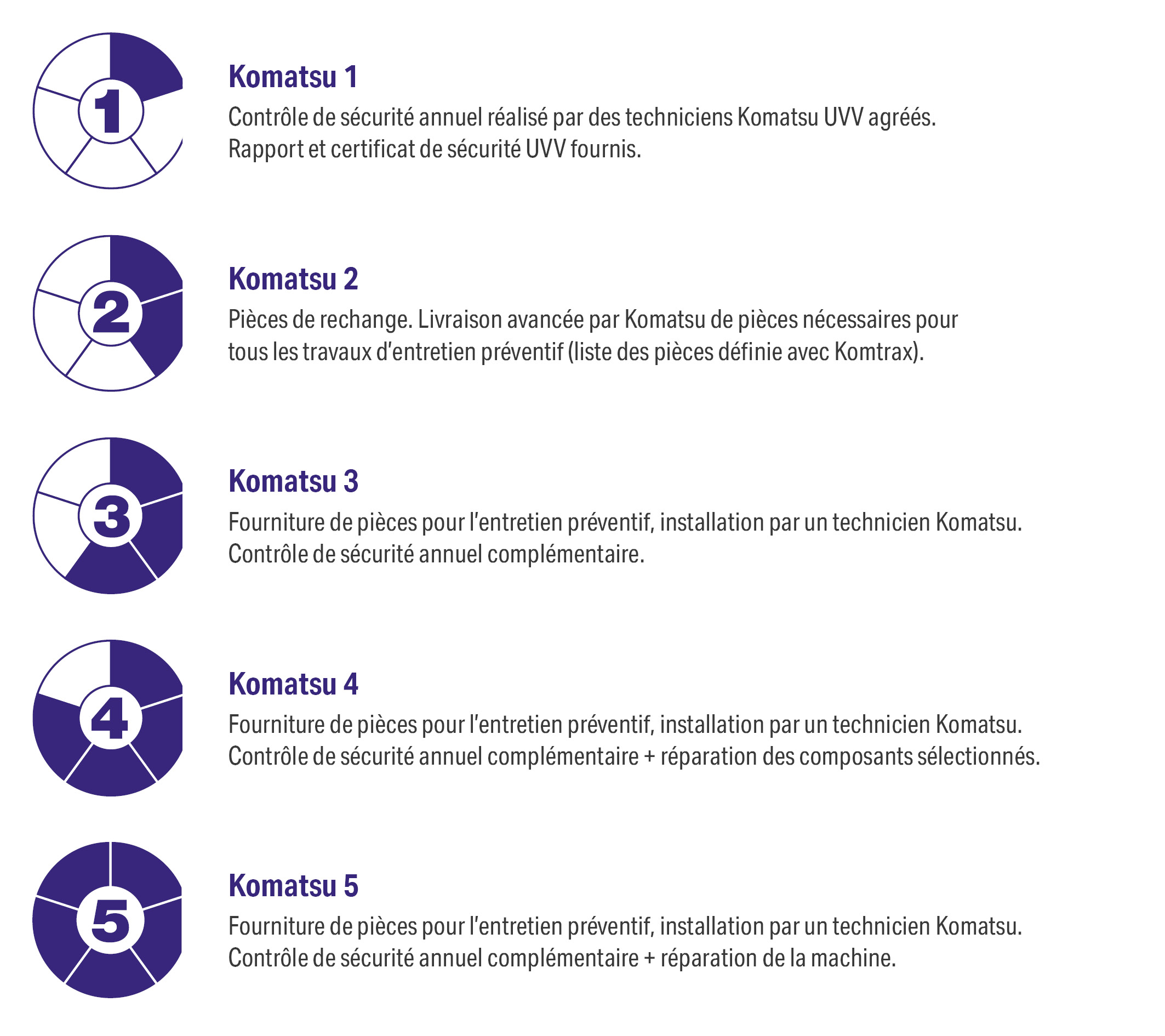 Veuillez contacter votre distributeur Komatsu pour connaître les types de contrat disponibles dans votre pays.