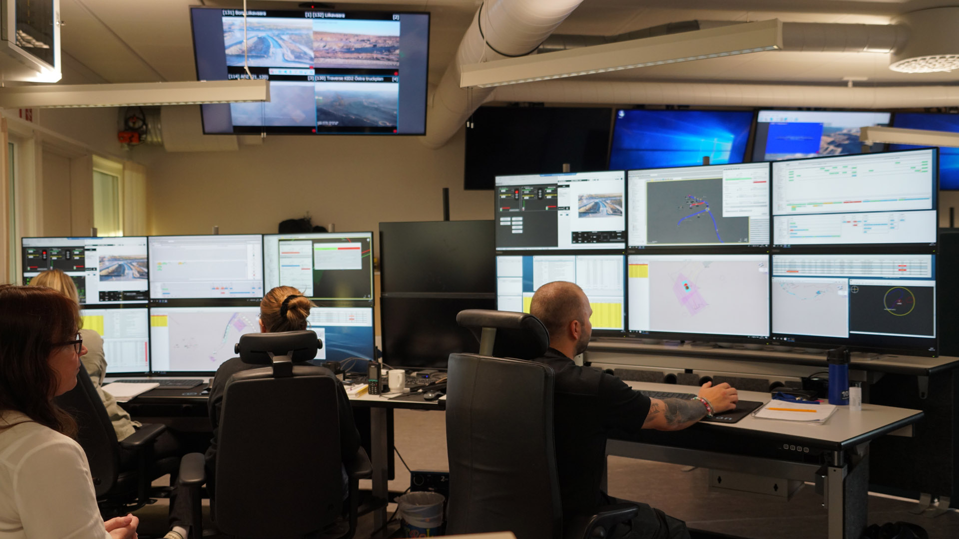 One of such roles is the central controller, who manages the flow of the entire operation from the central control room, making sure things are running the way they are supposed to. They use the FrontRunner software to set speed restrictions, supervising road conditions, dumping courses, or any other variables for the autonomous trucks, and they intervene in case of problems, such as a truck breakdown or an obstacle in the path. Today, trainers from Hesselberg are working closely with central controllers from Boliden in the control room, making sure that everything runs safely.