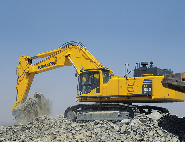 Les pelles hydrauliques Komatsu PC850LC-8R1 ont été conçues et fabriquées par Komatsu pour les travaux les plus durs et les plus exigeants comme l’extraction minière, les carrières et l’excavation massive. La PC850LC-8R1 a une consommation très faible en carburant.