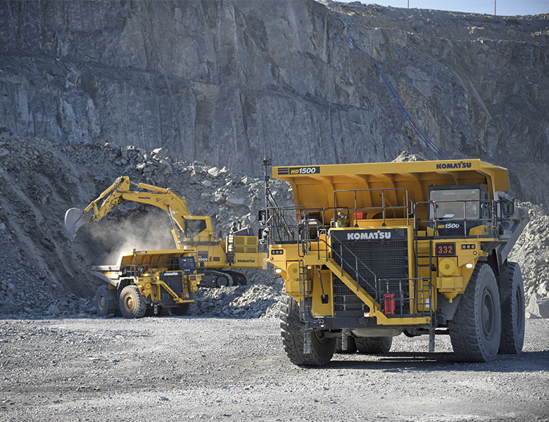 Confort et sécurité caractérisent tous les modèles de la gamme Komatsu. Nos tombereaux rigides HD1500-8 offrent également puissance, performance dans les déplacements et productivité élevée. Toutes les dernières technologies ont été utilisées pour réaliser un travail rapide et soigné.