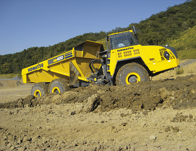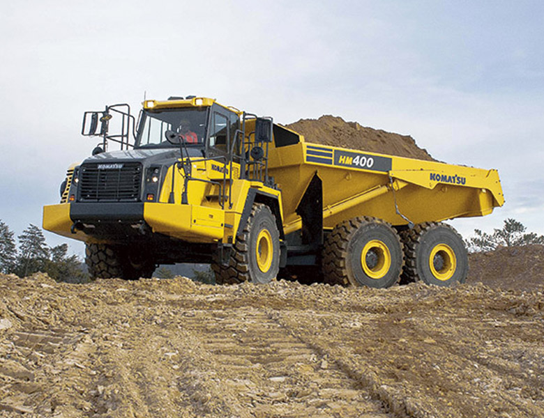 Os camiões da Komatsu são capazes de transportar cargas pesadas de forma rápida, fácil e eficiente em termos de custos. Os camiões articulados HM400-3R da Komatsu são construídos em torno de um potente motor da Komatsu e são máquinas excecionalmente resistentes. Estes garantem a total segurança na condução, mesmo a alta velocidade.