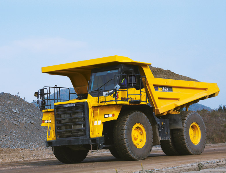 Os camiões da Komatsu são capazes de transportar cargas pesadas de forma rápida, fácil e eficiente em termos de custos. Os camiões rígidos HD465-7R da Komatsu são construídos em torno de um potente motor da Komatsu e são máquinas excecionalmente resistentes. Estes garantem a total segurança na condução, mesmo a alta velocidade.