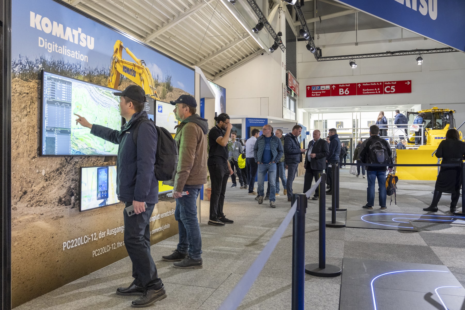 Visitantes a interagir com soluções digitais da Komatsu na Bauma 2025